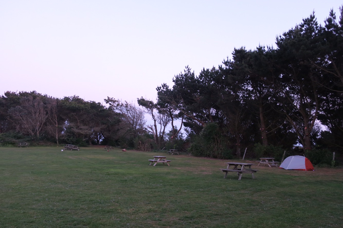 The woods continued and continued and continued. The coast path hadn’t be shrouded by trees at all since Lands End – why now? I dislike woods at dusk and really don’t like camping in woods so needed to get out to find a spot. I stopped in the corner of a field and cooked up some dinner then cracked on. I could see from the map that in a couple more miles the trees cleared. I was getting frustrated and it was getting dark, especially in the shade of the trees, it was humid and the little bitey bugs started to come out and, well, bite me! Finally just beyond Peppercombe beach the trees cleared and I found a spot on the path so I pitched up and went to bed. At 17miles it had been my longest day so far and was quite foot tired.