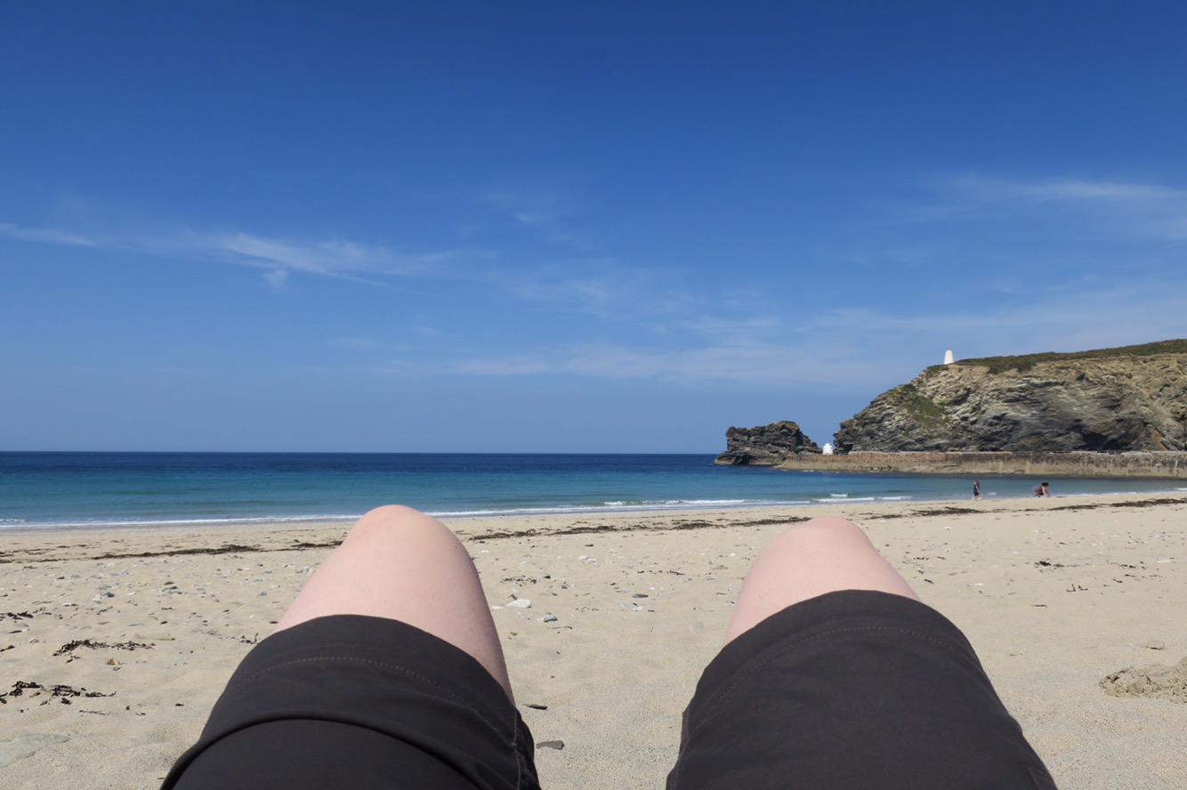 From there is was mostly flat across the top of the cliffs. Stumbled upon an unexpected cafe at Hell’s Mouth but far from hellish, I demolished a very tasty cream tea and was off on my way again. When I arrived in Portreath I headed straight to the bakery to pick me up a ‘Hiker’s Lunch’; pastie, doughnut and a drink for £4.50 – bargain and delicious! The sun was blazing and so headed for the beach and was the only person to scurry into the shade. It then occurred to me that it was a Wednesday lunchtime and apart from the pensioners and toddlers, why were there so many people on the beach and not at work…?! It didn’t trouble me for long, instead and I spread my towel and read my book.