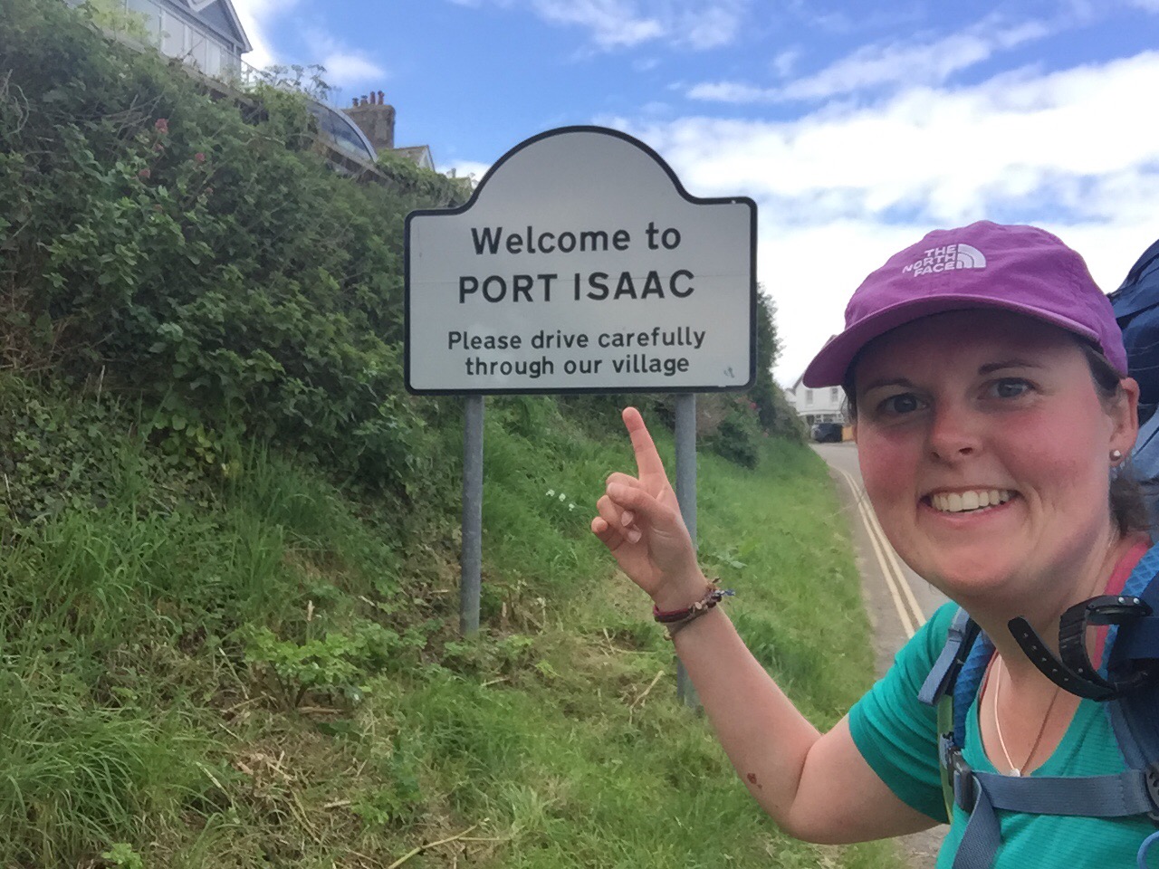 Set off and continued on an inland route and made a ‘bee’ line to Porteath Bee Centre to pick up some local honey and honey fudge…mmm yummy. Also went inland from Port Quin towards Port Isaac where I met a guy who walks laps of Cornwall for faith, now that is dedication, that must get very tough! Arrived in Port Isaac to find crowds of people and large amounts of TV crew; it turns out that Port Isaac is Port Wenn in Doc Martin and Martin Clunes himself was there so I got a quick snap and then passed through the crowds to get on my way. Took this as a nod to my little nephew: