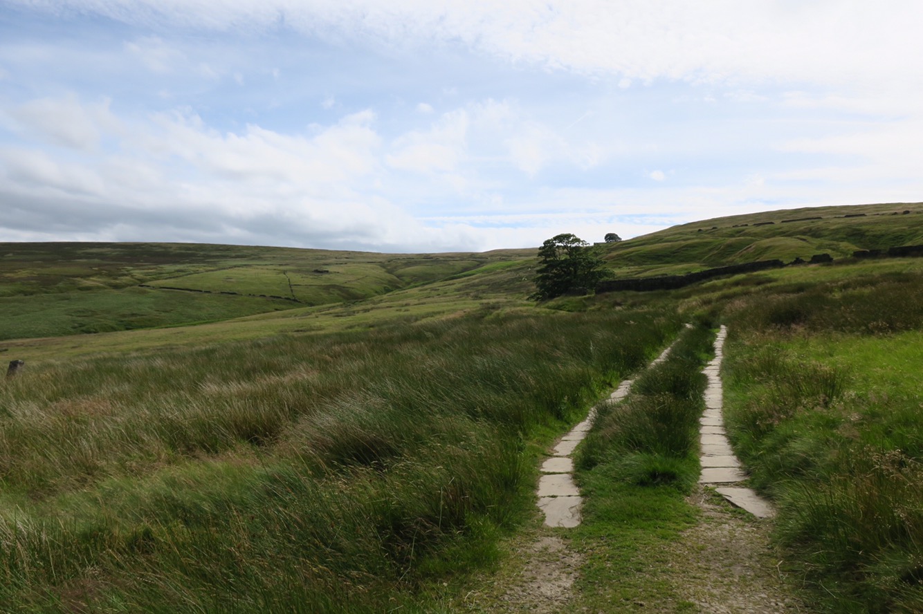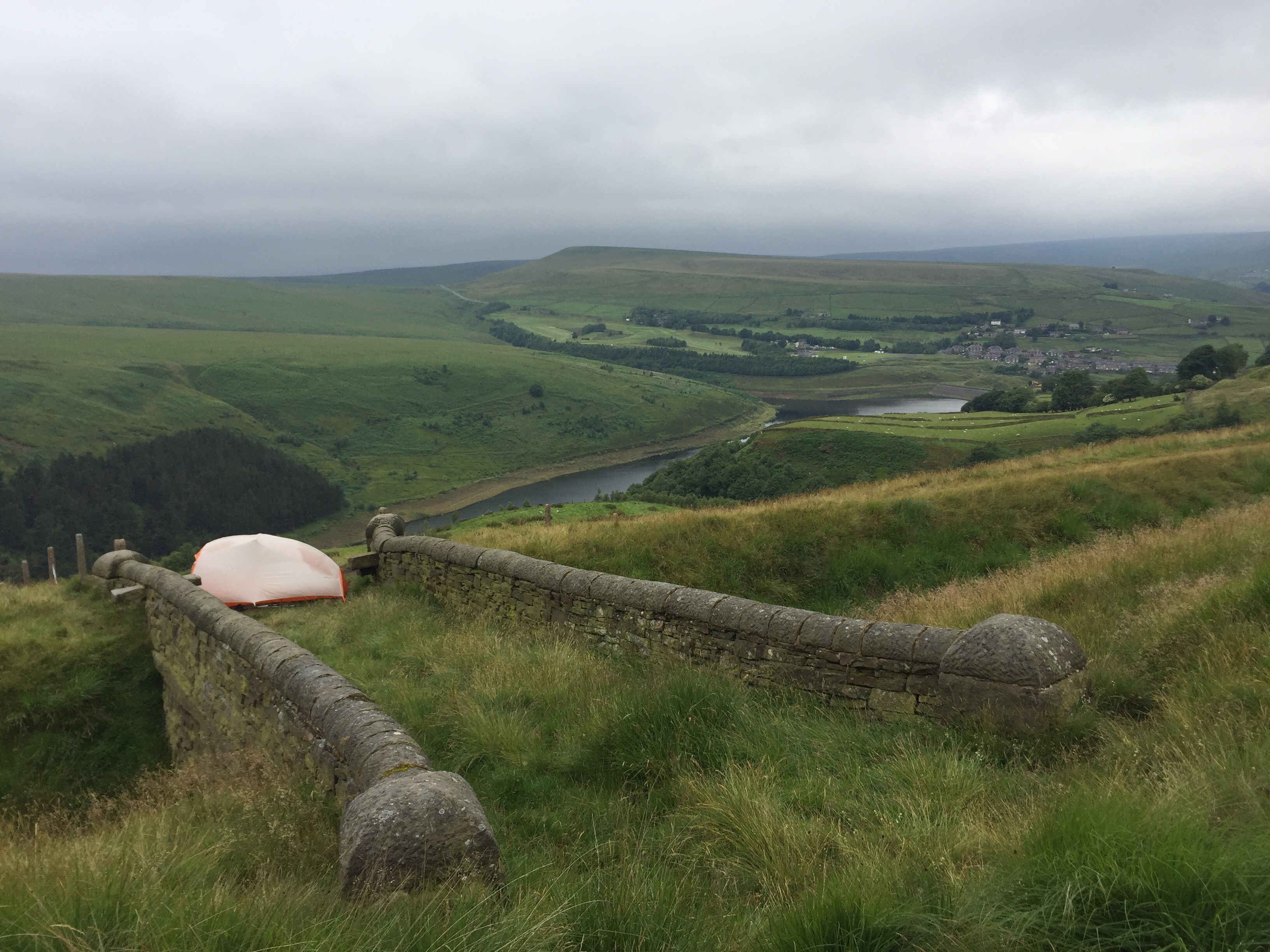 At around lunch time I met Claire another Pennine wayfarer. Then it was a long trudge down a forest road which I hated. There were a few lorries that barrelled along them too – without slowing – which was lovely of them. I kept myself going until I reached the edge of the forest where there were picnic benches. I was going to treat myself to a long sit down, boots off ‘n’ all. But as soon as I sat down the midges attacked. They put a very quick end to my plans and so I picked up my heavy bag and carried on grumpily. I could definitely feel the full weight being back on my back.