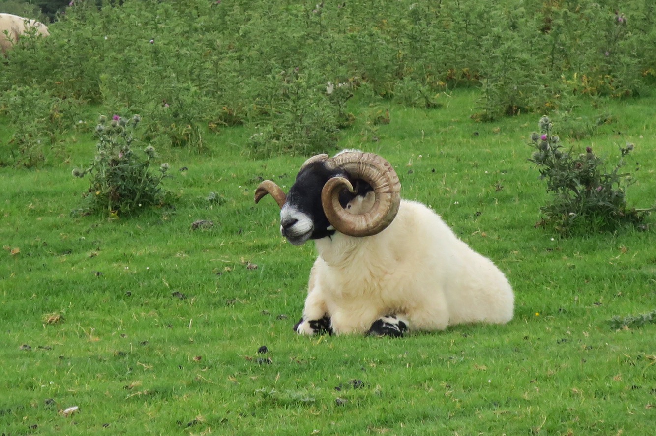 Nothing much else happened so here is a picture of a sheep with massive horns. I’ve seen A LOT of sheep since Land’s End – tens of thousands – and this one has the biggest horns by far.