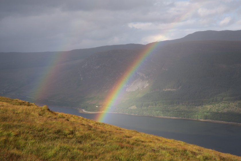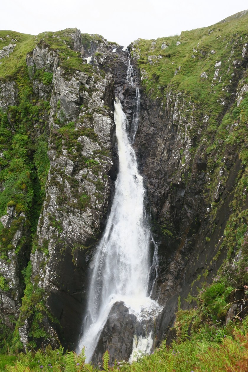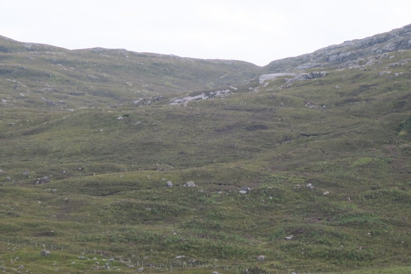 It was then a long march along a forestry track to the hamlet of Dalnessie. It’s a very remote place and I suspect they get snowed in for days (or weeks) at a time during the winter months. After a quick lunch stop of tinned tuna in a bread roll, I cracked on across and over quite a vast stretch of nothing rising to around 500m. Just bog and peat, a couple of streams and a few sheep. The plateau was mostly featureless but I managed to find the stream that led down the valley towards Loch Choire.