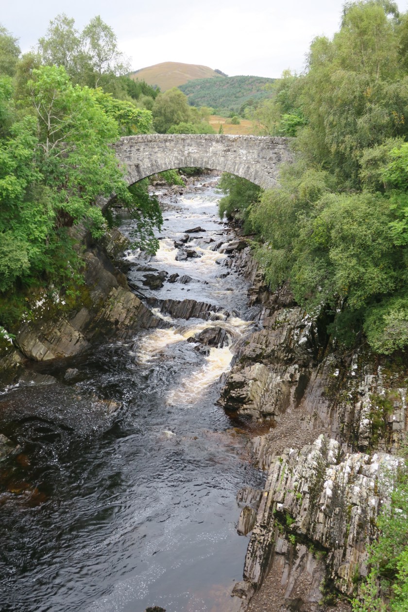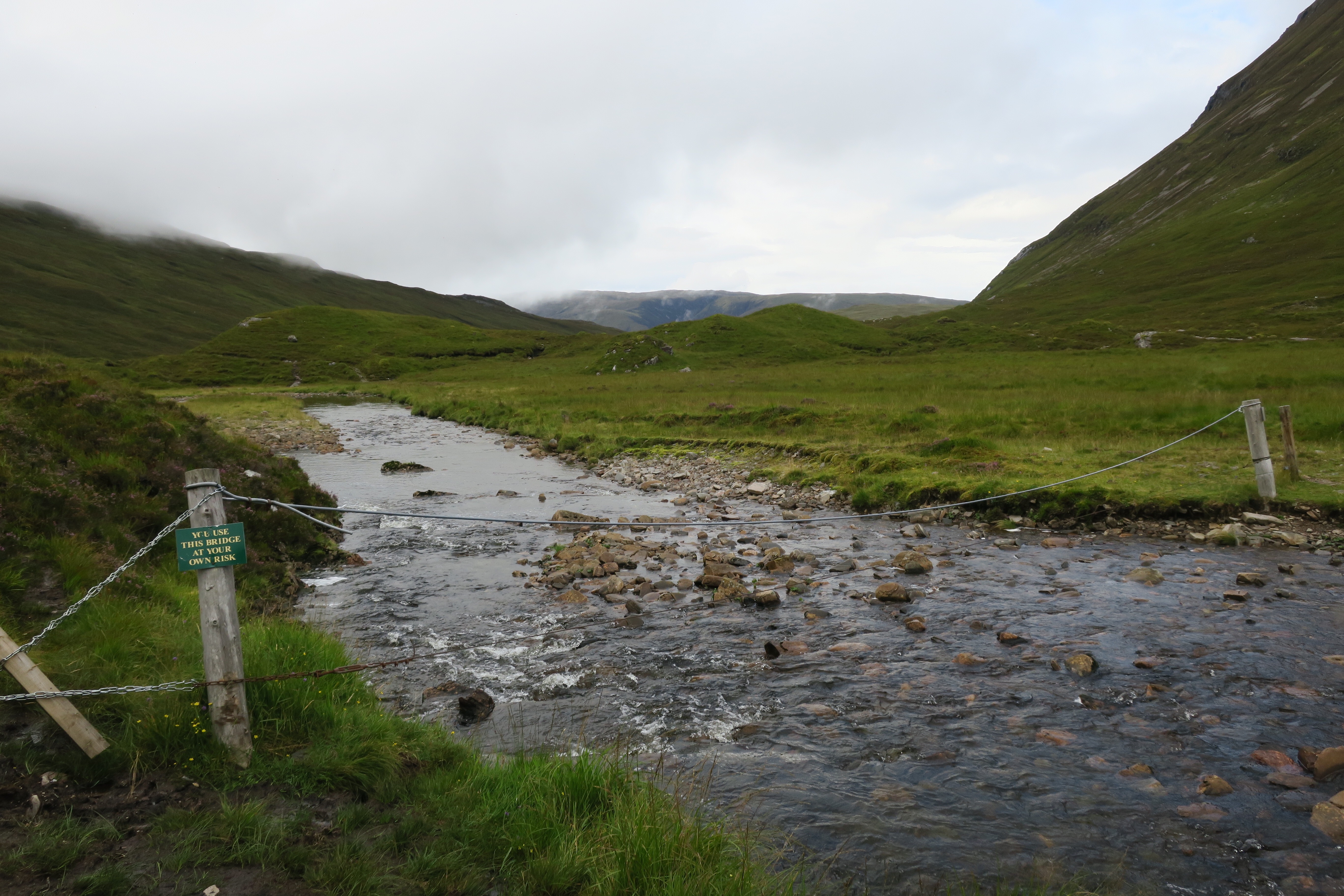 I strolled past a set of estate buildings called Glutt Lodge and then 2 miles on, just short of where I intended to camp – which was in the broad valley of the River Thurso – there was a sheltered spot by a bridge before the confluence of 2 rivers. I pitched my very wet tent, but it was now a nice evening so it dried off a bit, had dinner and went to bed.
