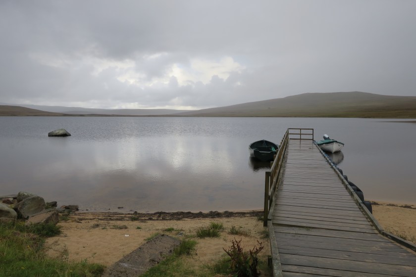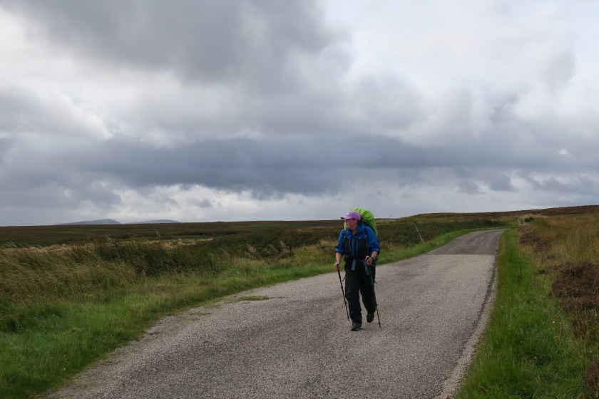 Well, the penultimate day. I knew it would be a relatively short day so I didn’t rush off, initially went past Watten Loch and it was more of the same from yesterday; farms, sheep, cows, wind turbines, roads and therefore cars. The guidebook does give a much more road free alternative to yesterday and today but ‘difficult going’ through the Moss of Killimster didn’t take my fancy. I relished in it being easy – if a little boring – even though I had to contend with big metal box-type things coming towards me at 30-40mph. At one stage the road was closed for resurfacing and I didn’t fancy taking the long diversion, so I brazenly strode through the many signs and approached the workmen who said I could walk by on the verge. Good job I heeded their advice because the freshly laid tarmac was so hot and still steaming that had I walked on it it would’ve melted the rubber soles of my boots and I’d have been stuck!