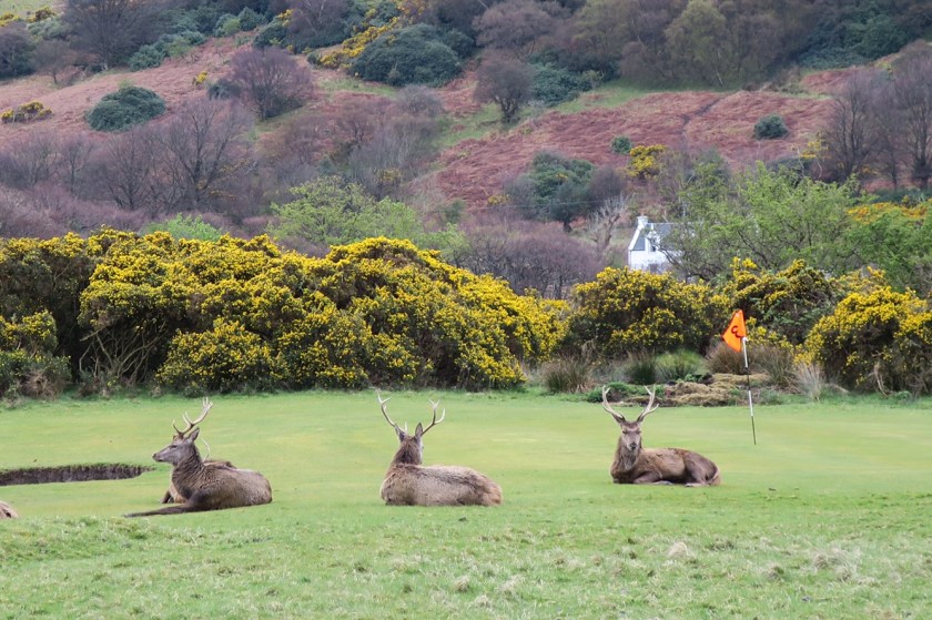 We continue down and just before reaching the edge of the forest a deer scampers off through the trees just a few metres away. Below the trees a large new deer fence (with no stile or gate to be seen miles) is overcome and we meet a track that leads up the valley to Ben Lui. No time for that today, so we turn down the valley, returning into the forest and to the level crossing at Tyndrum back to the cafe!